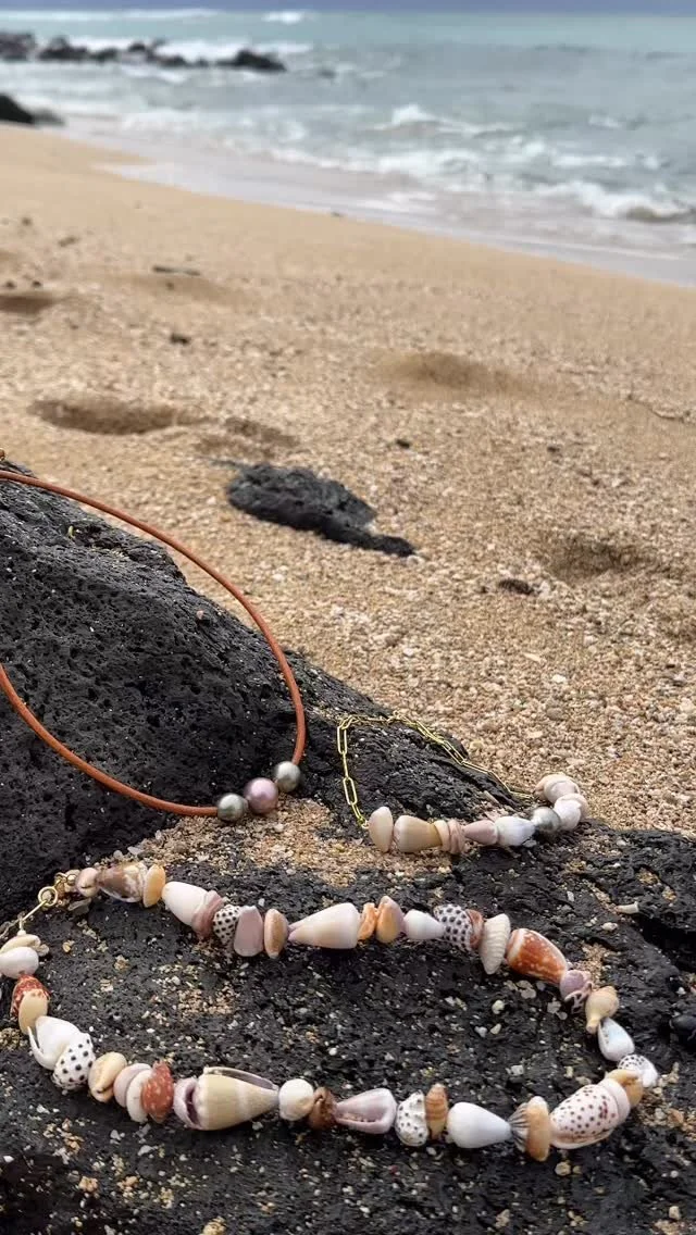 Our jewelry is not only beautiful, but carries a meaningful story behind it. Tash meticulously combs the beaches of Maui, removing trash and collecting ocean treasures, transforming them into stunning jewelry that symbolizes both the beauty and fragility of our oceans.
